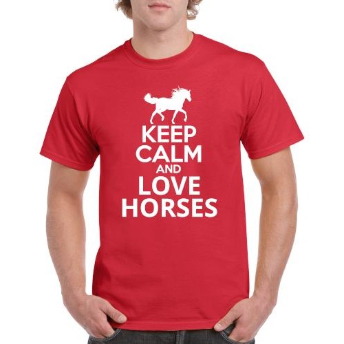 • Apparel - Stock Design T-Shirt Red with Keep Calm and Love Horses