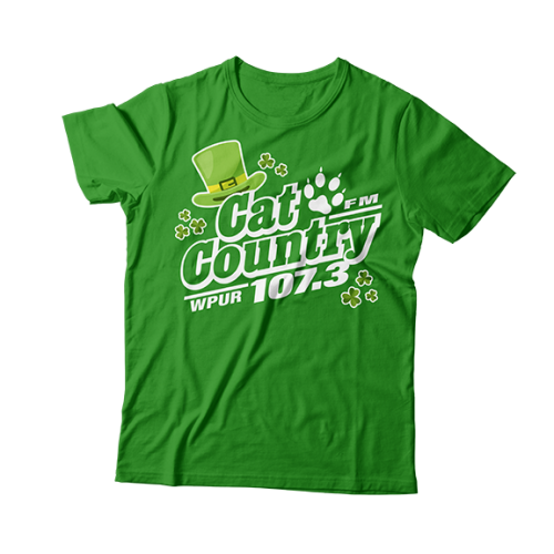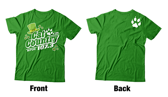 Apparel - Cat Country Limited Edition St. Patrick's T-Shirt Green with Full Front Logo and Back Shoulder Paw Print