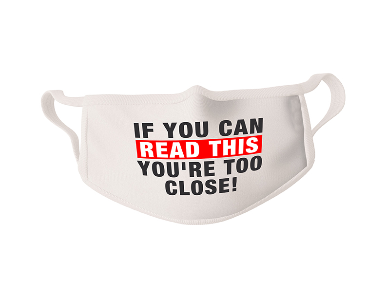 COVID-19 Face Mask If You Can Read This You're Too Close! - Sold in packages of 5 masks per package
