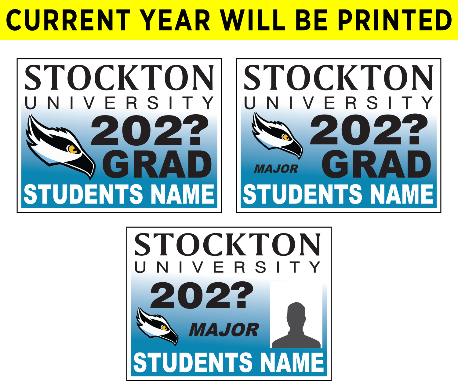 School Sign - 18"h x 24"w - STOCKTON University 4mm Corrugated Plastic Sign with Metal H-Frame Included