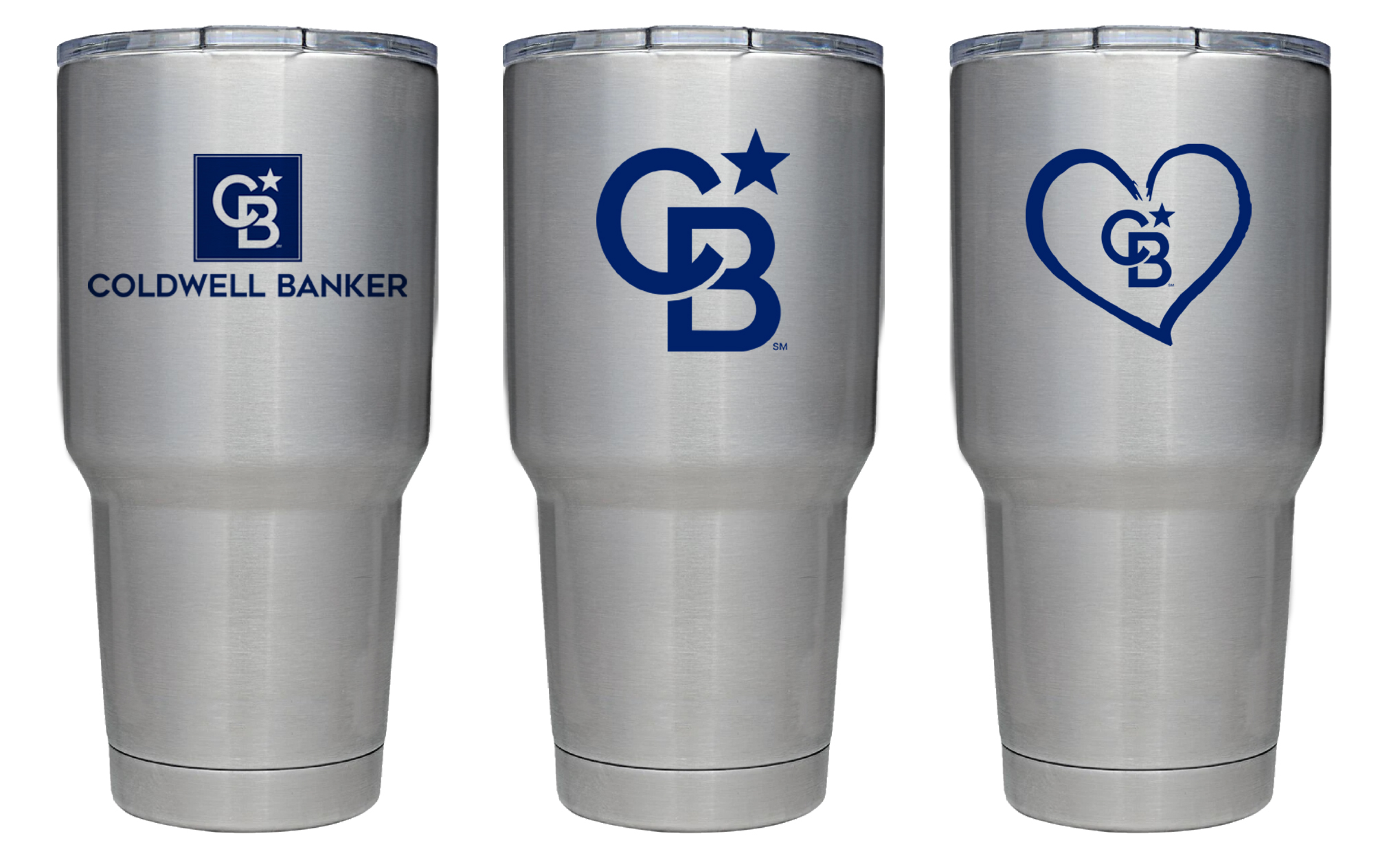Promotional Product - Coldwell Banker 30 oz Metal Travel Tumbler with Clear Lid