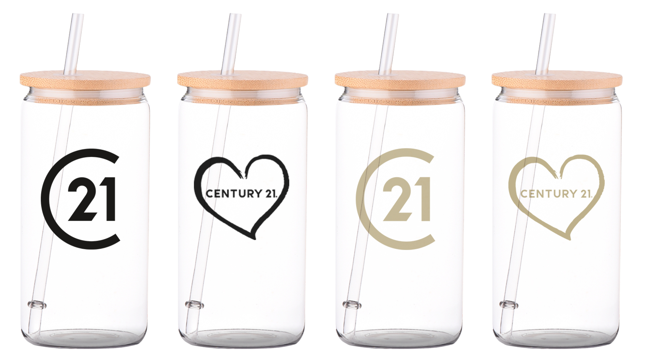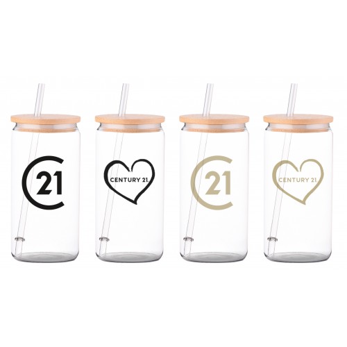 • Promotional Product - Century 21 16 oz Glass Tumbler with Bamboo Lid & Straw