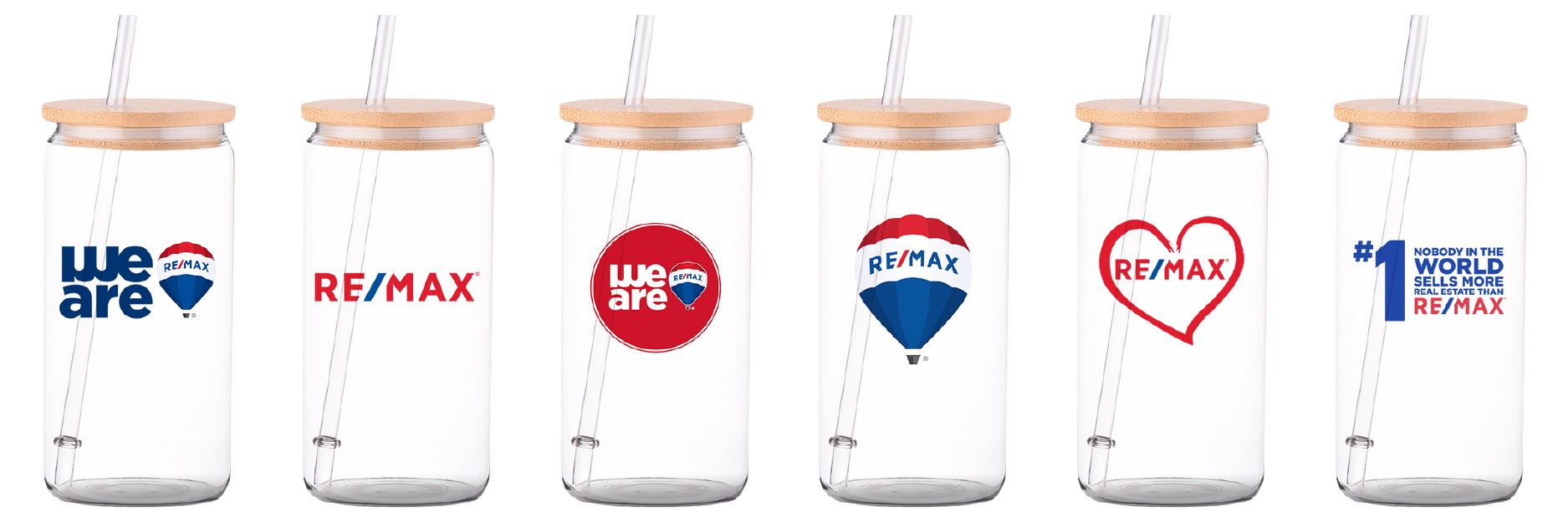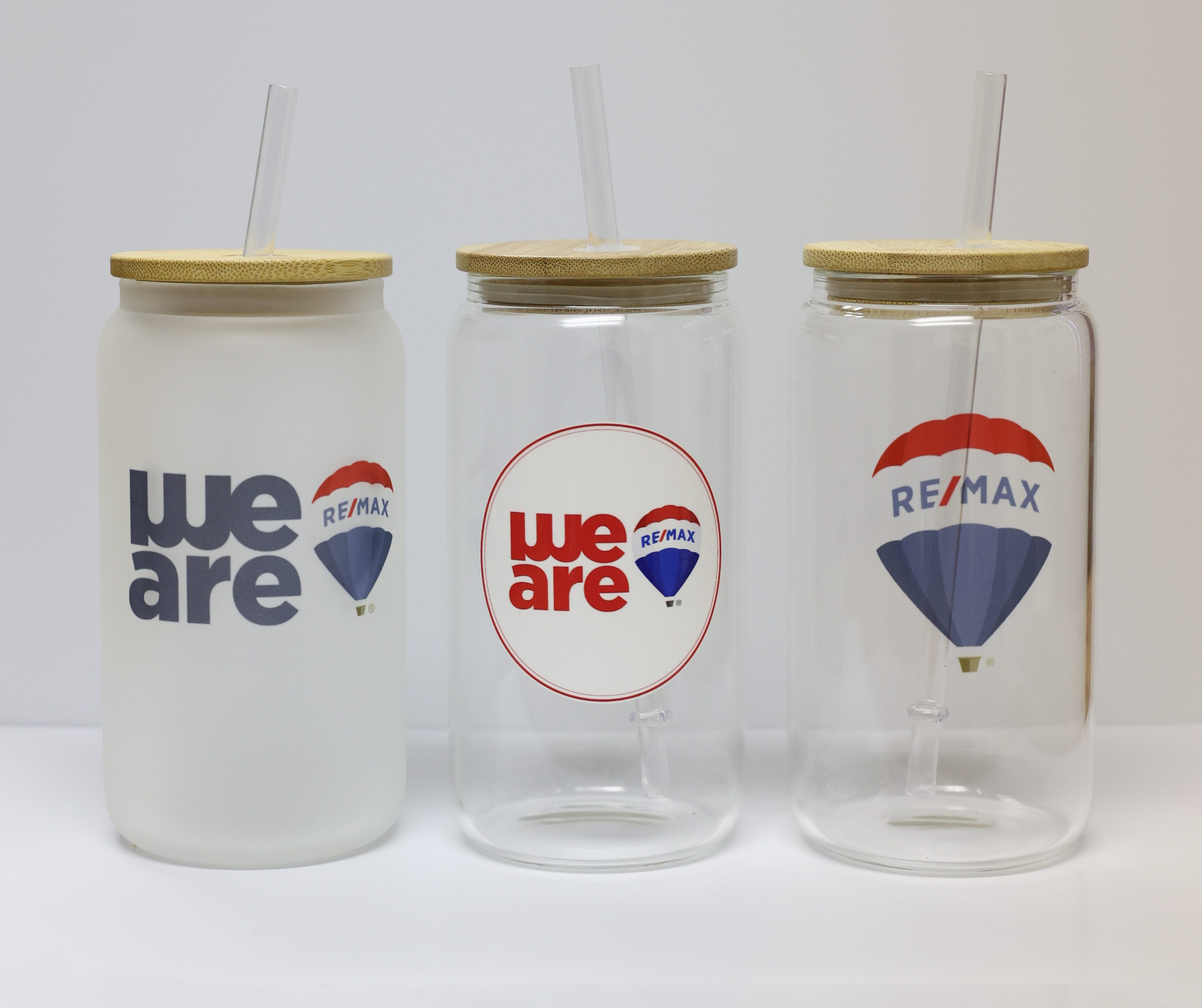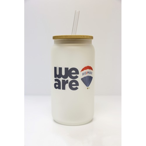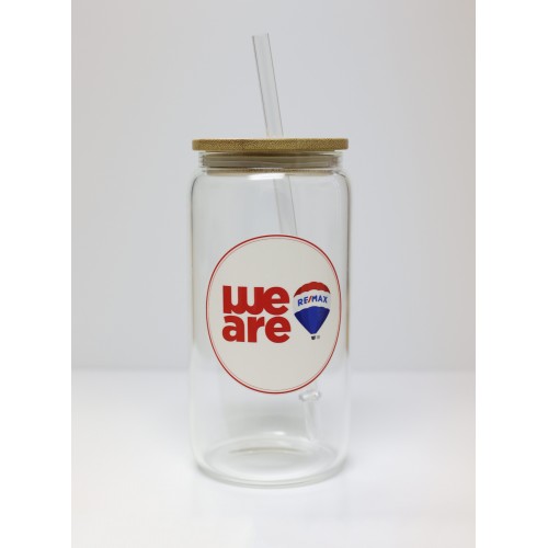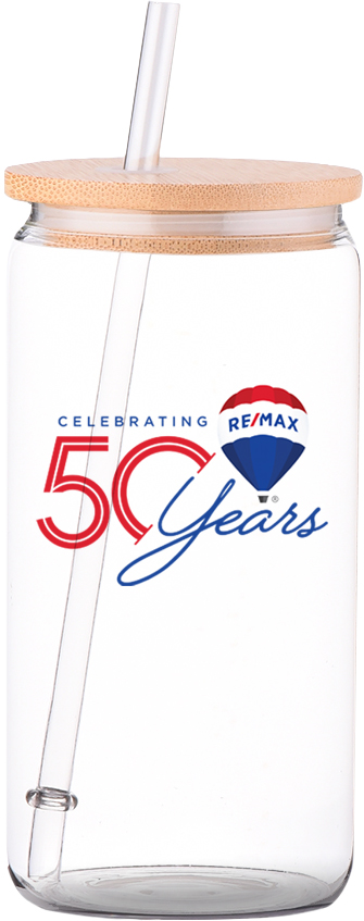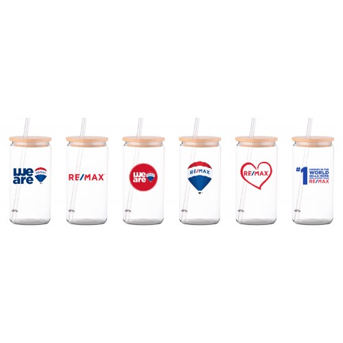 Promotional Product - RE/MAX 16 oz Glass Tumbler with Bamboo Lid & Straw