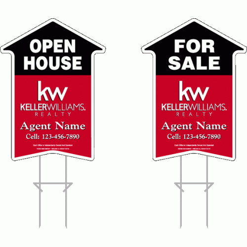 Keller Williams Directional - Custom 23x17x6mm Coroplastic Arrow Shape - Single Sided Only